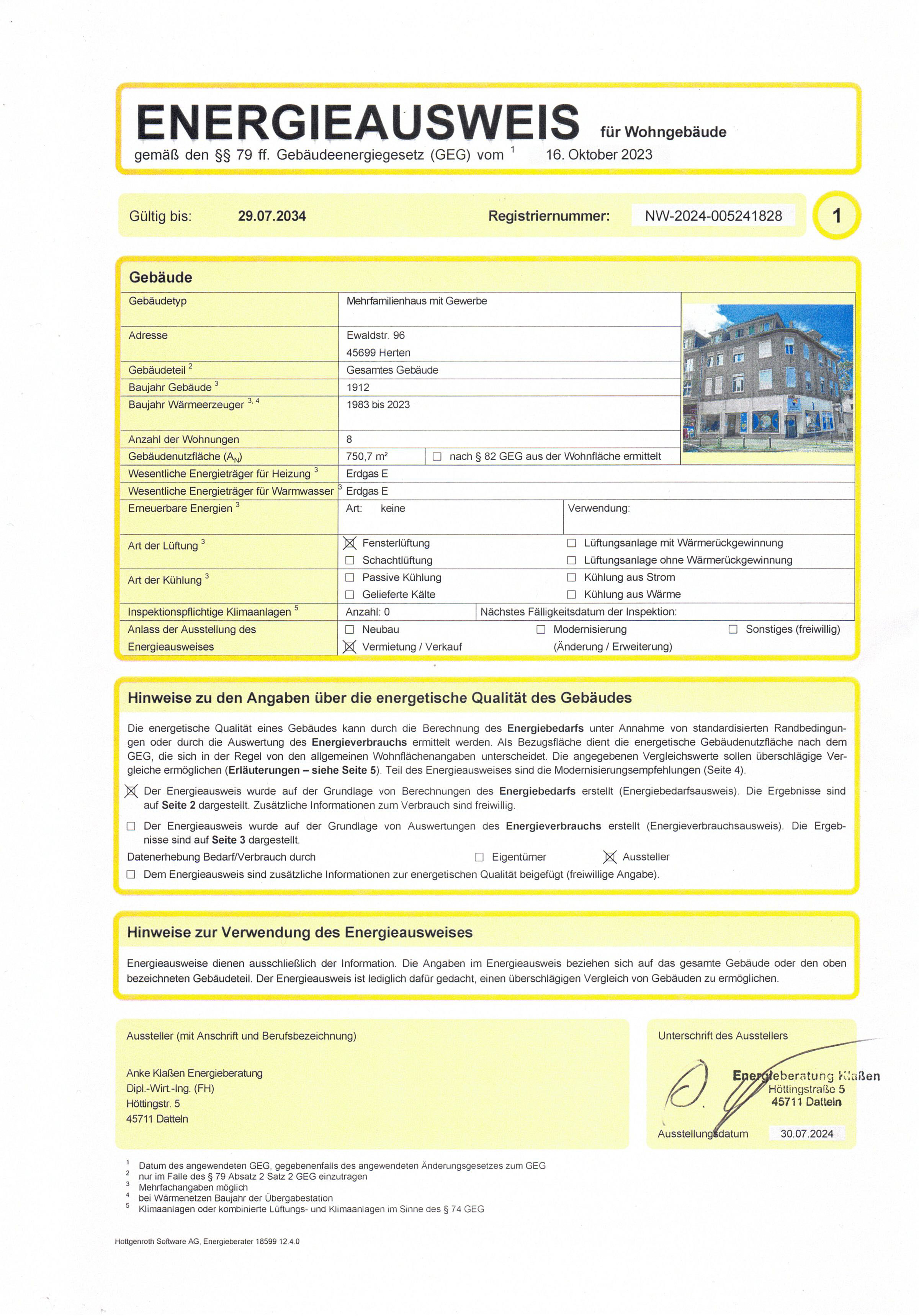 Die in Renovation befindliche Wohnung im 3.OG bietet einen Panoramablick auf die Zeche Ewald und könnte auch gut als attraktive Airbnb Wohnung vermietet werden. Die große Gewerbeeinheit ist bereits seit 1999 fest vermietet. Alle anderen Mietverträge wurden zwischen 2016 und 2020 geschlossen und generieren strukturel gute Einkünfte.